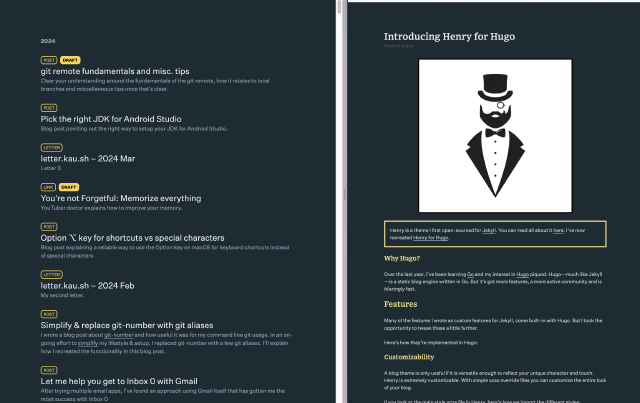 Henry is a gorgeous Hugo theme optimmized for a good reading experience and packed with features
